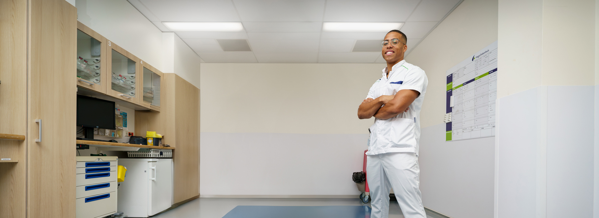 Glenn is blij dat hij zijn plek in het HagaZiekenhuis gevonden heeft. “Dit ziekenhuis heeft echt een huiskamergevoel. Het is groot want er werken veel mensen en we mogen zorg verlenen aan nog meer patiënten. Toch voelt het ook klein omdat je heel snel je collega’s leert kennen en het zo snel voelt als thuis. Daarbij kan je met je ambities overal terecht. Er zijn oneindig veel doorgroeimogelijkheden. Het liefst ga ik elke middelbare school in de regio langs om te vertellen hoe leuk werk ik heb.”